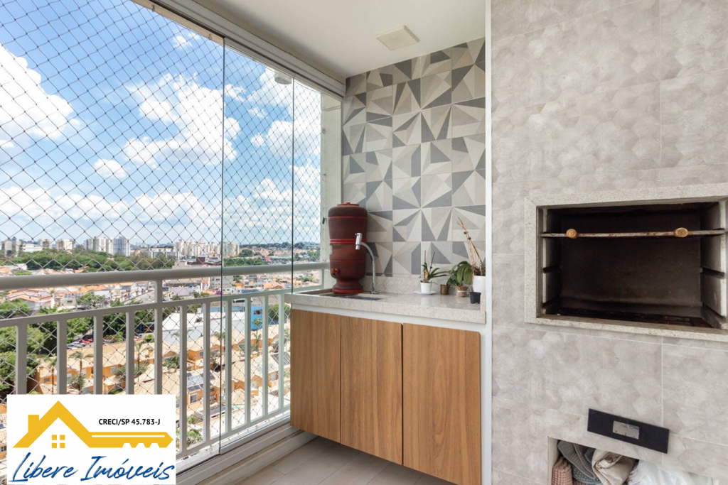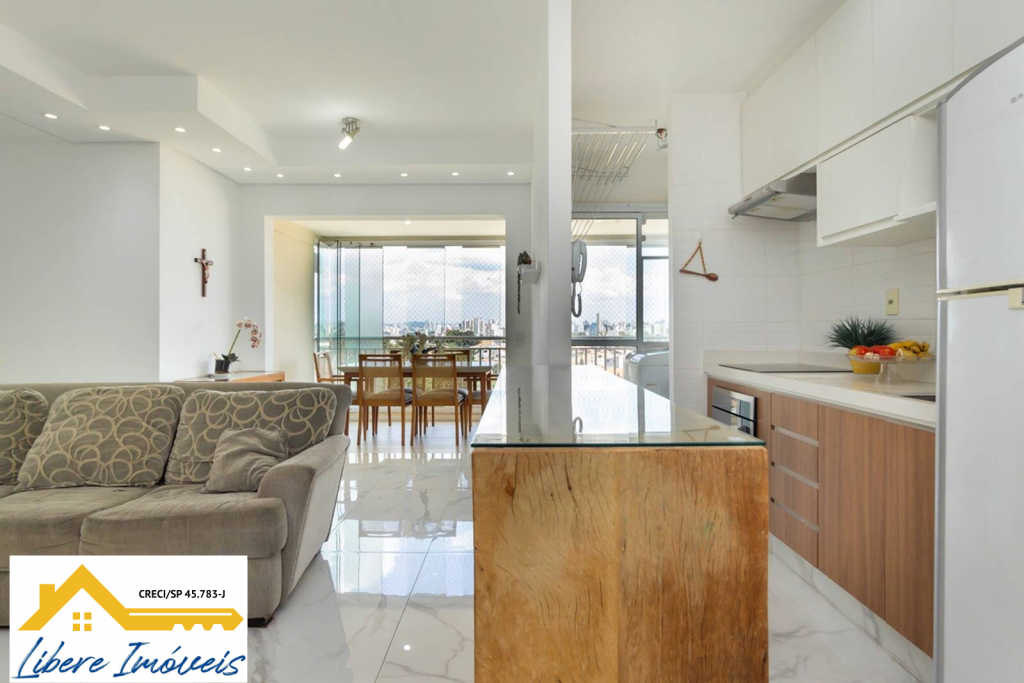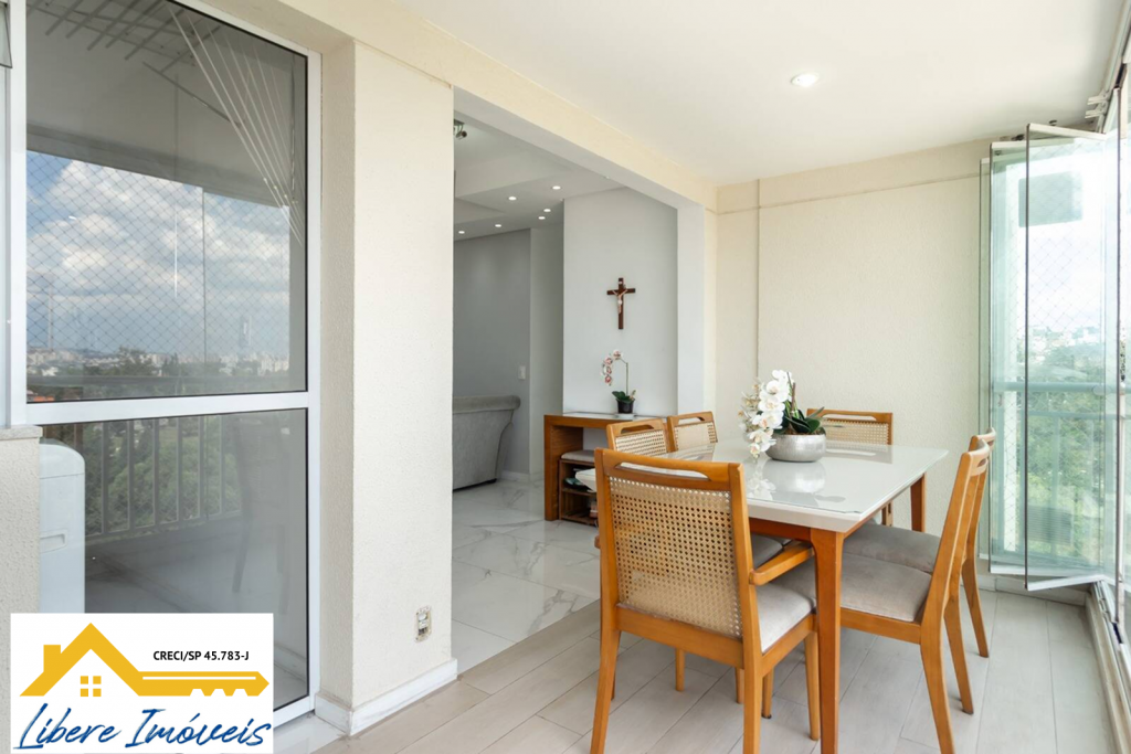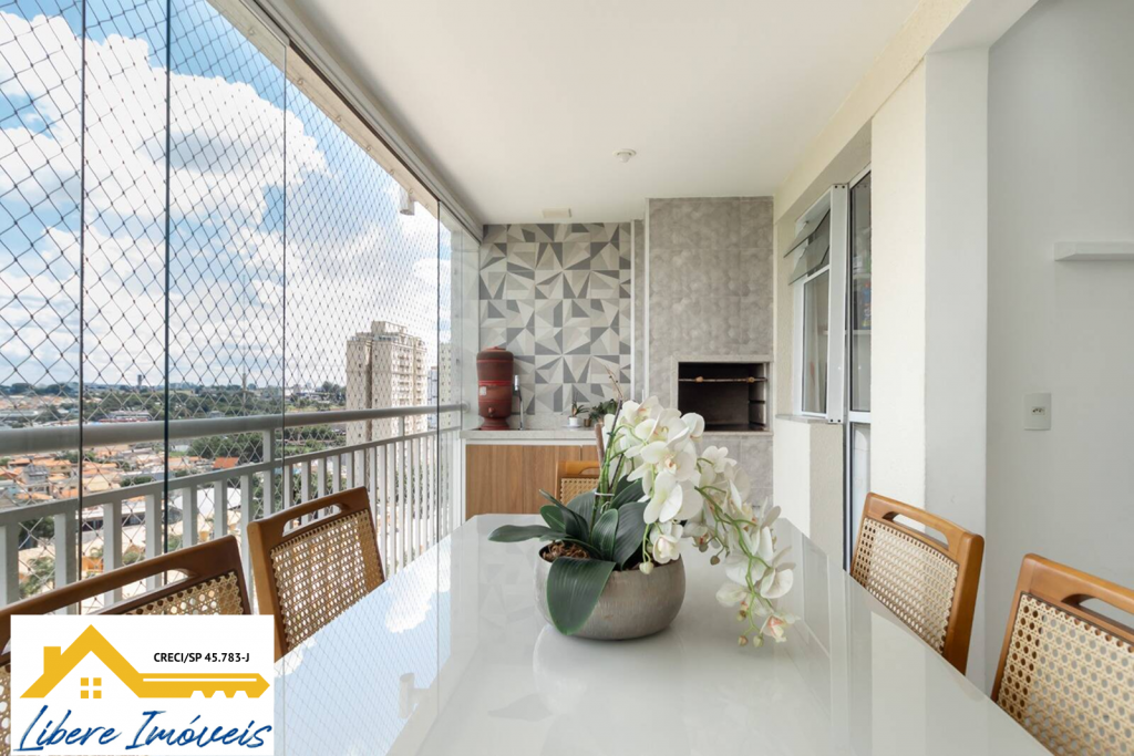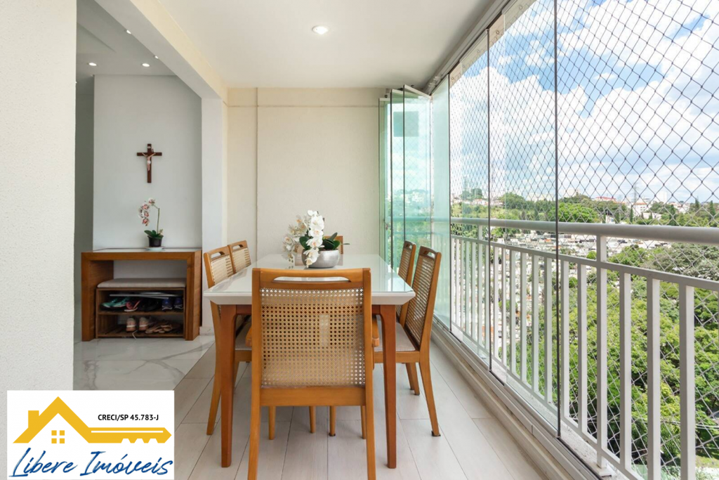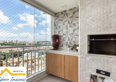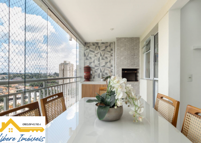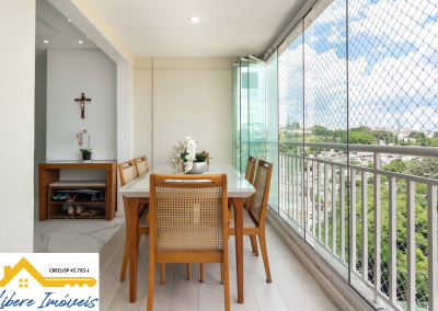 Varanda gourmet com fechamento em vidro, integrada à sala
