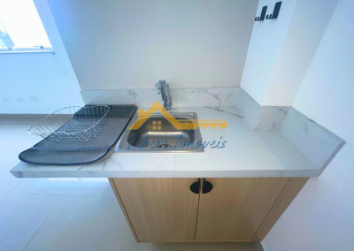 Com 25 m² de área útil, o espaço foi projetado para proporcionar praticidade e conforto no dia a dia, contando com um ambiente amplo, pintura nova, piso em porcelanato e uma grande janela que garante ventilação e luminosidade ao longo de todo o dia.