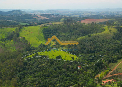 A propriedade possui 65.000 m² (2,5 alqueires), com áreas abertas, pastagem formada de cerca de 55.000 m², bosque, terreno com boa topografia e um ribeirão que corta a área, garantindo água natural durante todo o ano. Há também espaço para pomar, horta e outras atividades rurais.