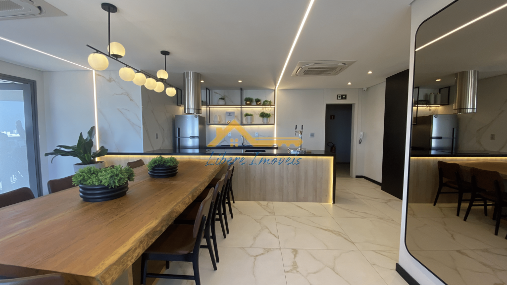 O apartamento apresenta acabamentos atuais, com revestimentos em tons neutros e bancadas em pedra, transmitindo um visual elegante e atemporal. Conta ainda com 2 vagas de garagem, oferecendo mais comodidade e segurança.