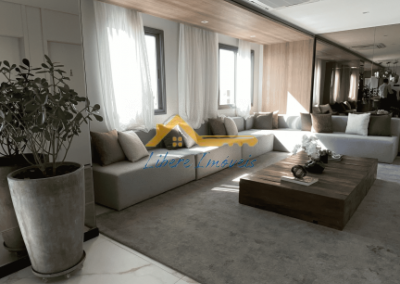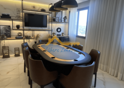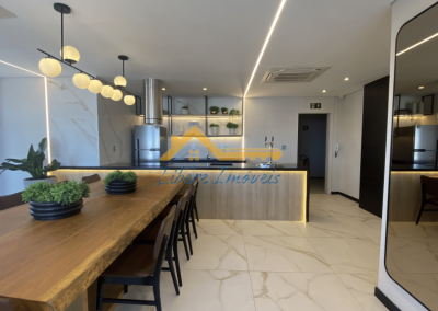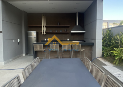 A sala ampla integra-se de forma harmoniosa à cozinha, criando um espaço acolhedor e ideal tanto para o dia a dia quanto para receber convidados. A varanda gourmet com churrasqueira amplia a área social e proporciona um ambiente perfeito para momentos de convivência e lazer.