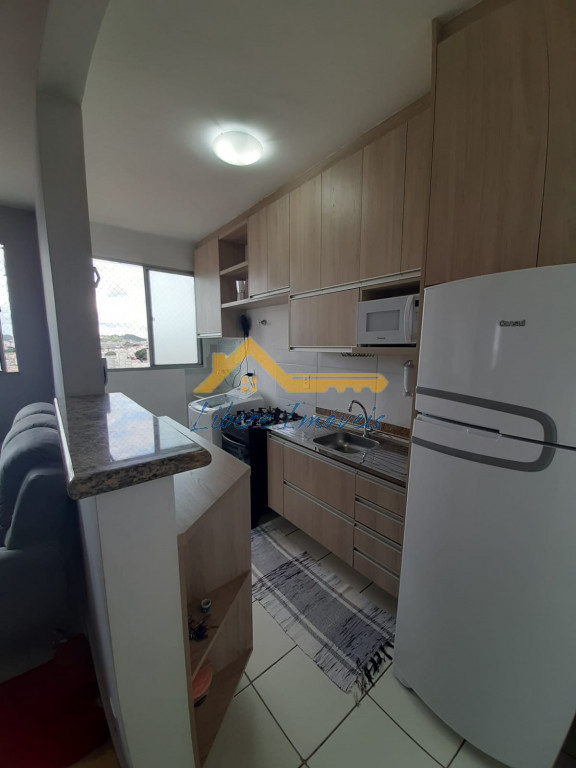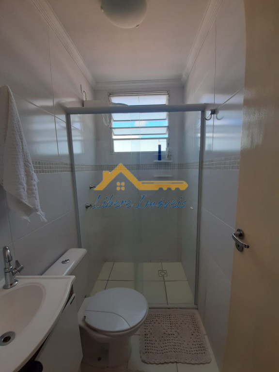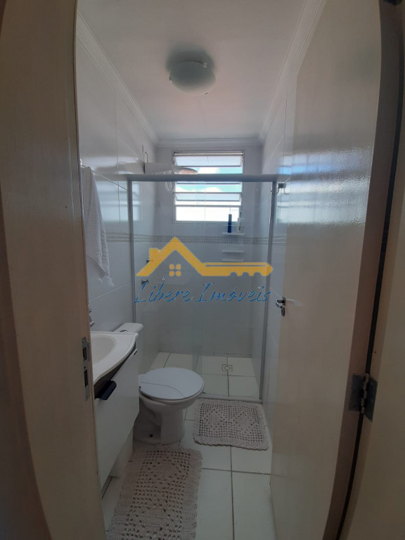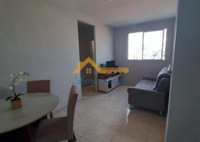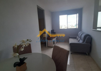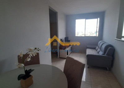 Apto com 02 dormitórios em piso frio, sala 02 ambientes em piso frio, 01 banheiro social em piso frio, paredes com azulejos até o teto com box de vidro, Cozinha em piso frio com armários, área de serviço em piso frio com armários, garagem para 01 auto coberta.